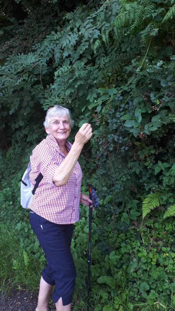 On the return walk, I was determined to fulfil my promise and found some juicy blackberries for Margaret to enjoy. We also enjoyed looking at the lovely “Chocolate Box” Cottages, one of which had an apple tree laden with fruit. Some windfall apples were sitting in the clear waters of Nant Aberthin below, which Mags described as ready washed windfall apples! The owner had come to chat to us and said to help ourselves to the ones on her wall. All we needed was some pastry and we could have made an apple and blackberry pie (Well Mags could!).