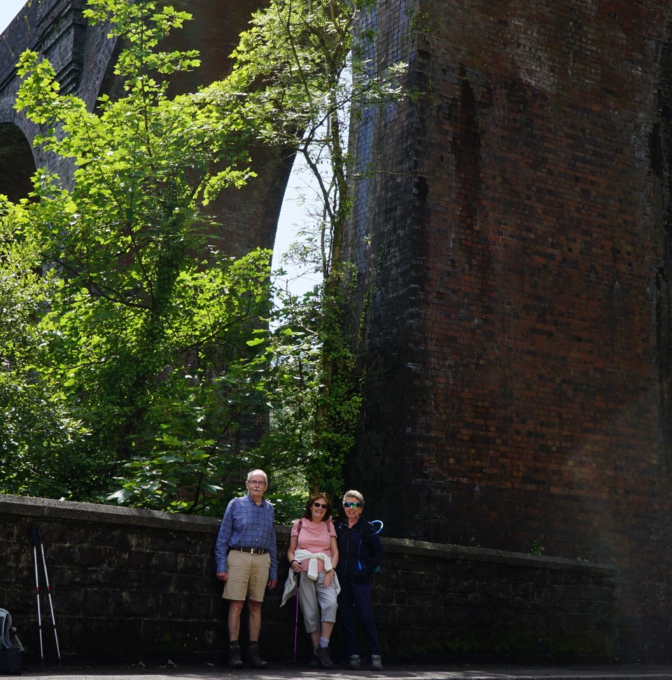 Yours truly and two charming companions left Afan Argoed Forest Park to join the abandoned track of the old Rhondda and Swansea Bay railway to make our way towards Pontrhydyfen. After a short diversion into woodlands, occasioned by a landslip, we rejoined the track and soon found ourselves in Rhyslyn car park, the site of the former Pontrhydyfen railway station. We marvelled at the effort and expertise of the workers who constructed the enormous bridge abutments and the spectacular but now redundant aqueduct which once took water across the valley to feed the Oakwood iron works.
