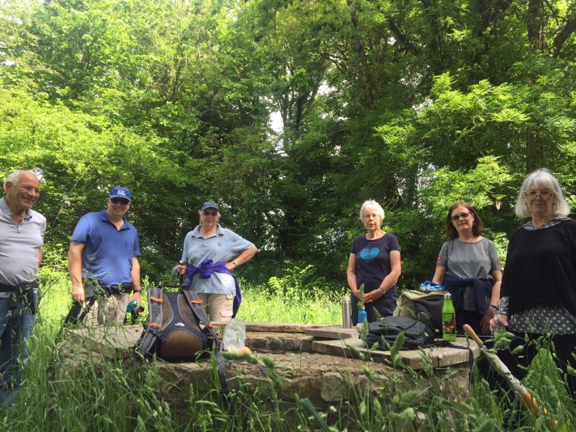 By the time we got to the little area with the deep well, albeit dry, we were ready for a drink and a short break. Lacking our usual “resident” photographer, we have had to make do with two shots, each of 7 of us.