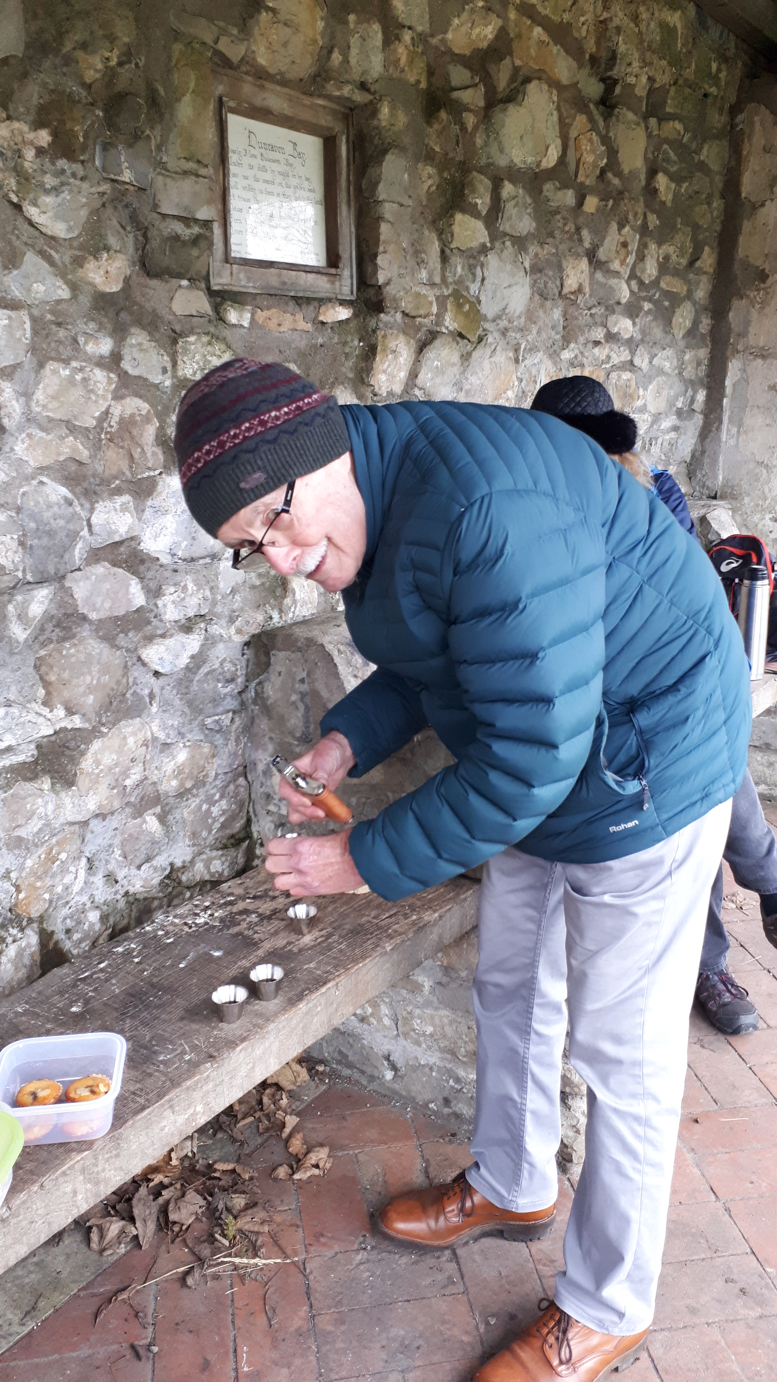 It was lovely to see Sue, Linda and John waiting for us. So, we then headed into The Walled Garden to share our Christmas Fayre in The Summerhouse. Amidst the laughter and chatter we spotted a familiar figure heading across the path…….No not Santa, but to our delight it was Graham who certainly brought festive cheer in more ways than one (his hip flask).