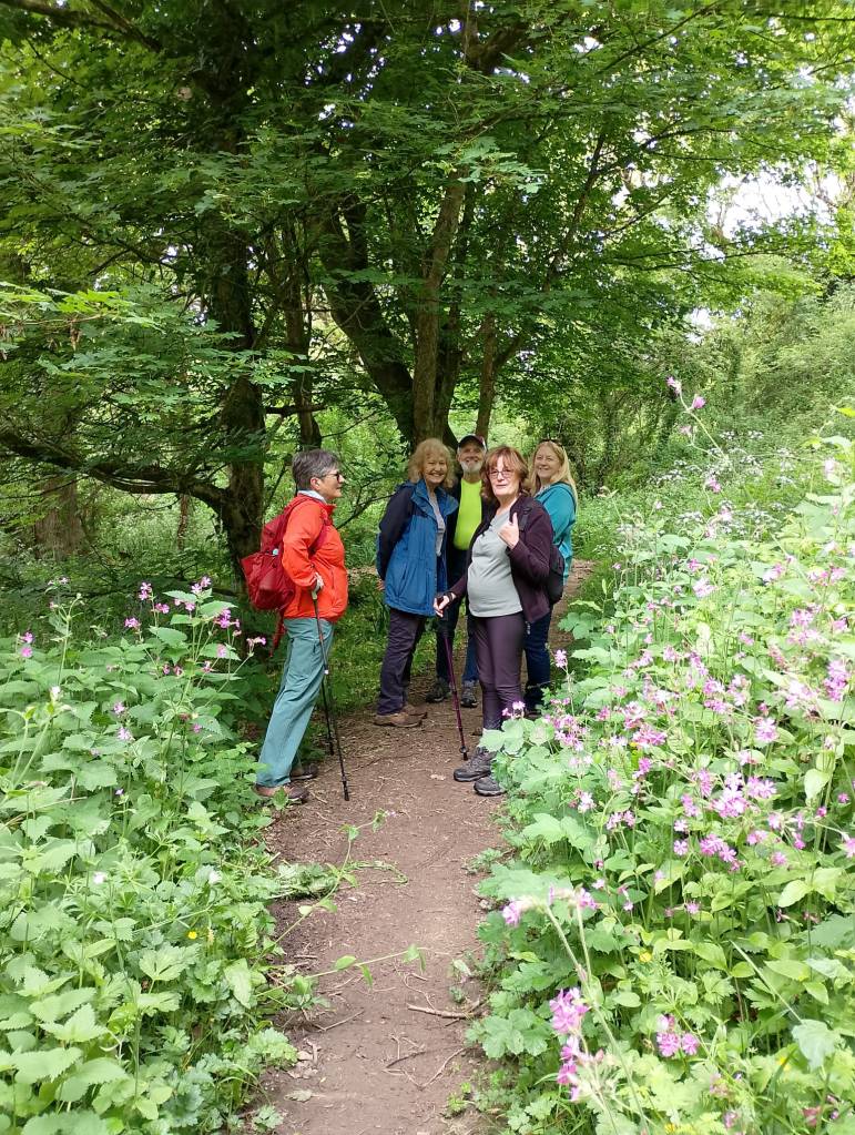 The Met Office warned of Thunderstorms and flooding by 12 noon, but although the sky looked threatening at times, our initial group of 10 + 3 had very pleasant Goldilocks conditions for our walk: not too hot, not too cold, just right (the lucky 13).