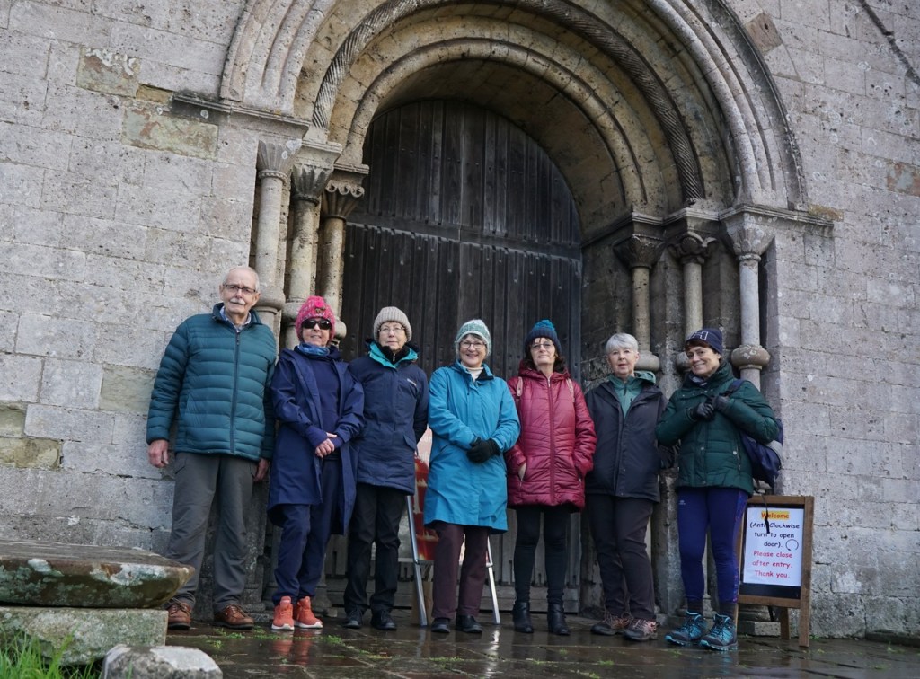 The western aspect of the building is impressive, rebuilt in 1870 in an Italianate style with towering campaniles at each corner but with the original Norman doorway. On entering one is confronted with the 12th century Norman nave and, looking back, three glorious Burne-Jones windows. The volunteer staff were wonderfully welcoming and the long gift stall proved a magnetic attraction – so much so in fact that Liz had to go before everyone could be persuaded to leave for the team photograph outside.
