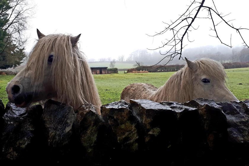 We then crossed fields and woodland behind the church meeting several equine varieties, all very friendly and photogenic. They did however have the same problems with their hairstyles as me…… the windswept bedraggled look.