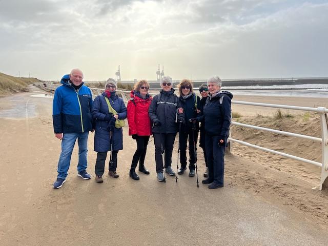 Seven Wanderers braved the buffeting winds to walk the Promenade at Aberavon beach.