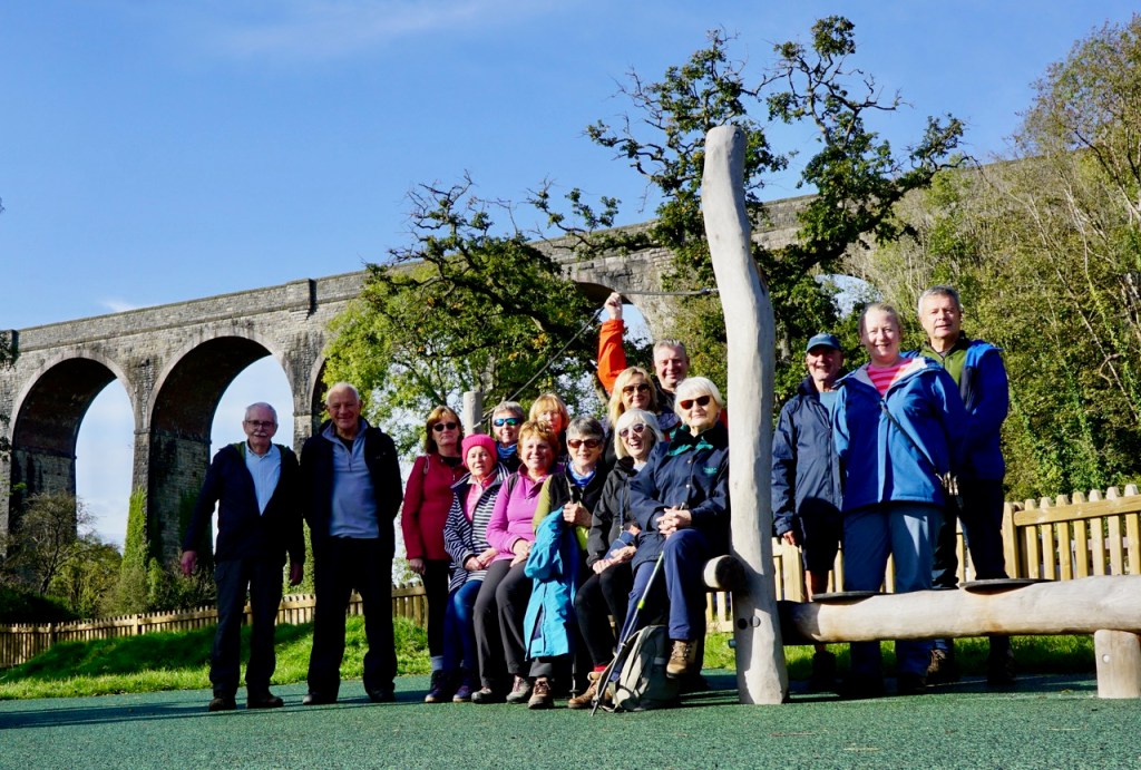 After the group photo in front of the very impressive Grade 2 listed viaduct we headed back through the meadows, enjoying the autumnal colours to retrace our footsteps back up the footpath out of the park to the lane.