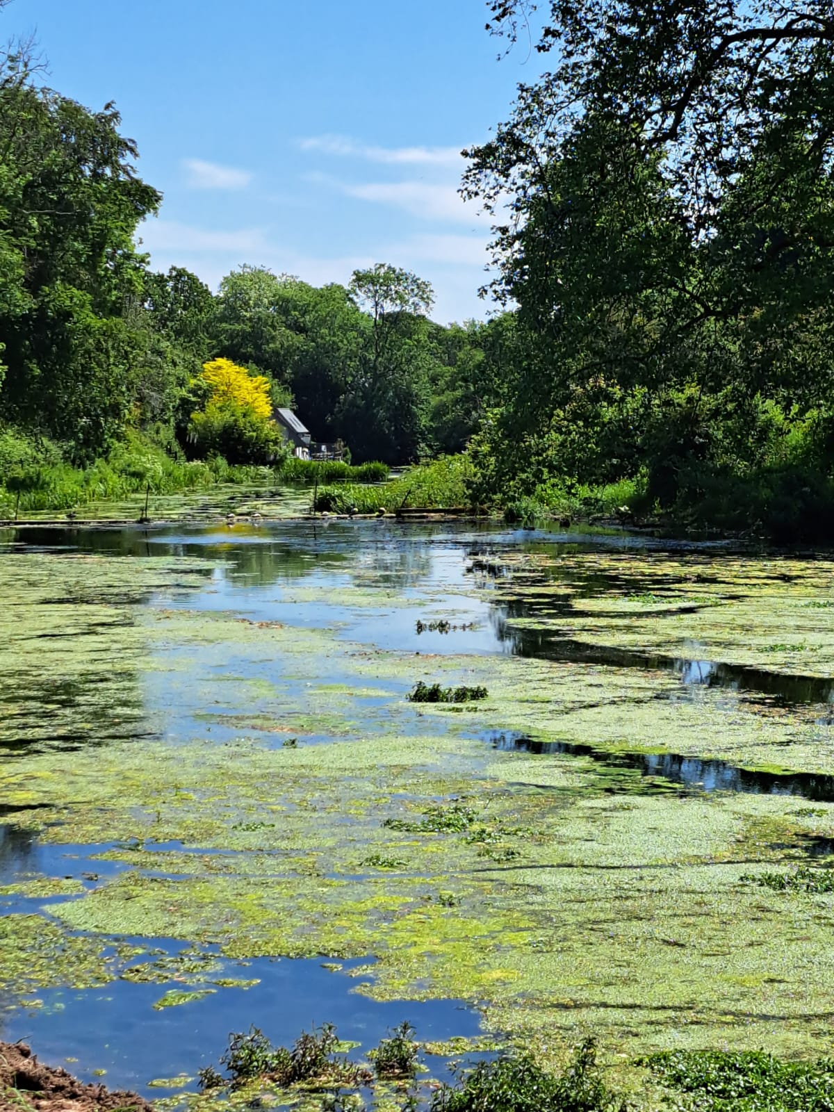 Traversing on down, we came to the Salmon Leaps, a series of large ponds, connected by steps/ weirs, but no sign of salmon though, wrong season maybe? High above this path, we could glimpse the chimney stacks of what, we later learned, is Cwrt yr Ala House, an historical estate which is the interest of Derek Brockway’s Weatherman Walking this week (see BBC iPlayer). The estate has been bought by a Welsh businesswoman who has developed a commercial enterprise to include holiday barn conversions.
