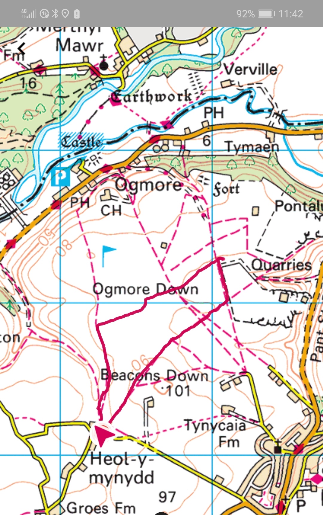 We took a slight detour to show Elizabeth the quarry as she had not walked the downs before, and then turned to walk alongside the edge of Southerndown Golf Club being careful to avoid any stray low flying balls.