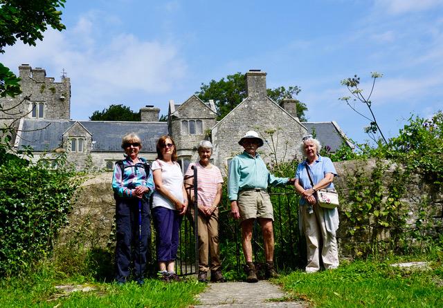 Crossing the little bridge, which is reputed to be haunted, we rounded the bend to arrive at Plas Llanmihangel, a magnificent 16th century Tudor mansion built upon the site of an earlier 13th century house. Grade I listed the property has been on the market for some time at £1.3 million! Entering the churchyard opposite we peered into St Anne’s well but were denied access to the church by the firmly locked door. However, a convenient bench on the north side of the church proved an ideal spot for refreshing our thirsts. Sadly, a new headstone nearby commemorated the deaths of Mr and Mrs Beer, the last occupants of the Plas.